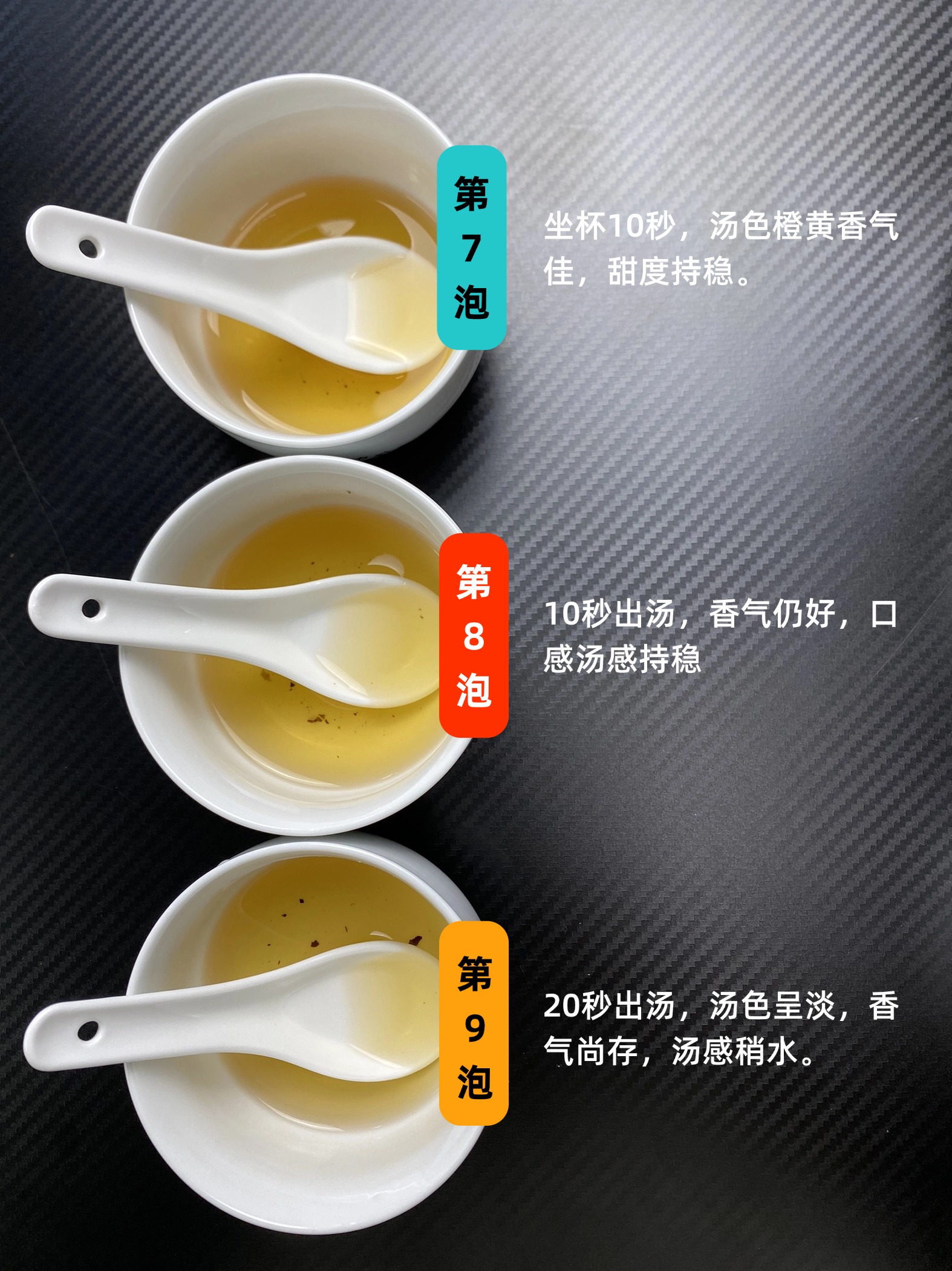 第七泡,坐杯10秒,汤色橙黄香气佳,甜度持稳。