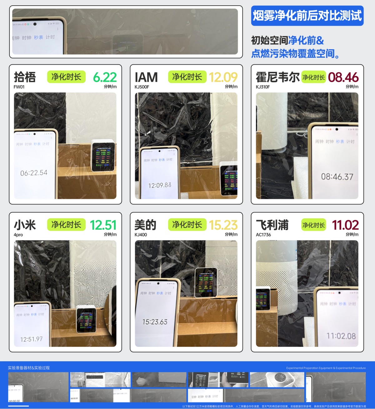 相比之下,其他五款空气净化器虽具大体积滤芯,但风道设计与响应效率不足,净化不彻底,难以满足高效除污染的需求。