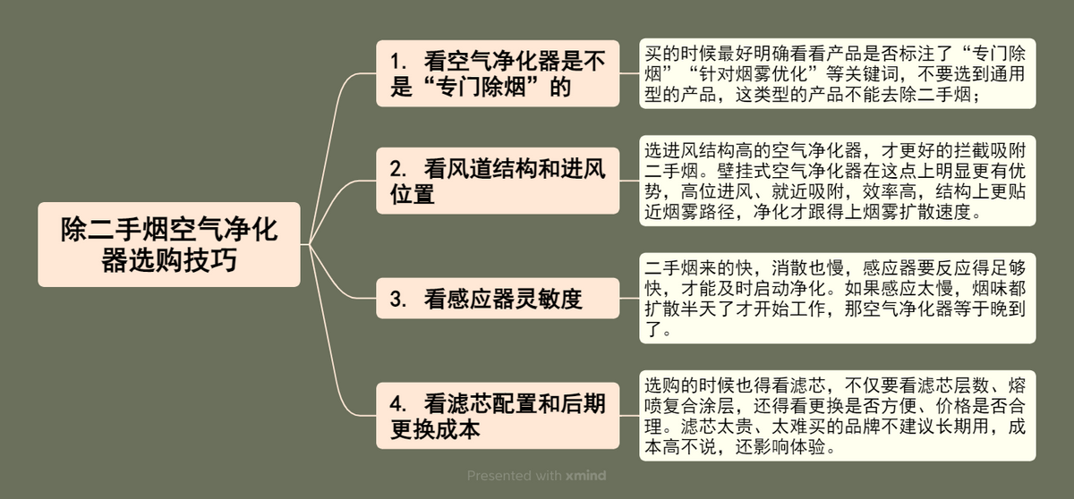 不是所有空气净化器都适合除二手烟。很多都是做除甲醛、灰尘这类颗粒物的,对烟雾、异味这种气态污染处理能力很有限。买的时候最好明确看看产品是否标注了“专门除烟”“针对烟雾优化”等关键词。