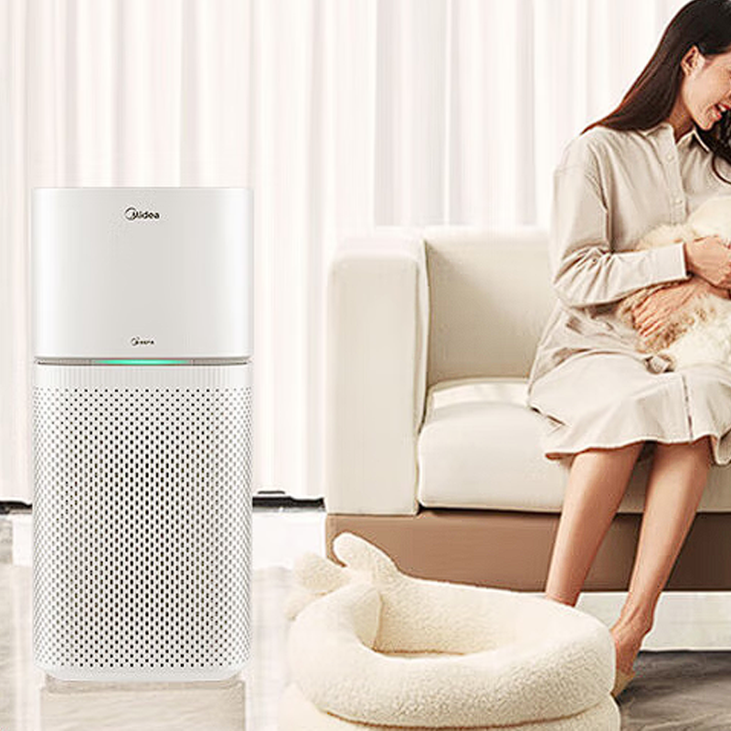 美的 KJ400 外观简洁大方,白色的机身给人一种干净利落的感觉,无论是什么样的家居环境,它都能很好地融入其中。支持远程控制,通过美居 APP,在外面也能轻松实现,随时随地开关机器、调节风速。运行时噪音很小,睡眠模式下安静无声,不会对休息造成任何干扰。机器自带高精度传感器,空气质量好不好,在显示屏上一目了然,让你对室内空气状况了如指掌。而且腰部还有渐隐灯带,更方便查看空气状况,进一步的方式调节挡位。