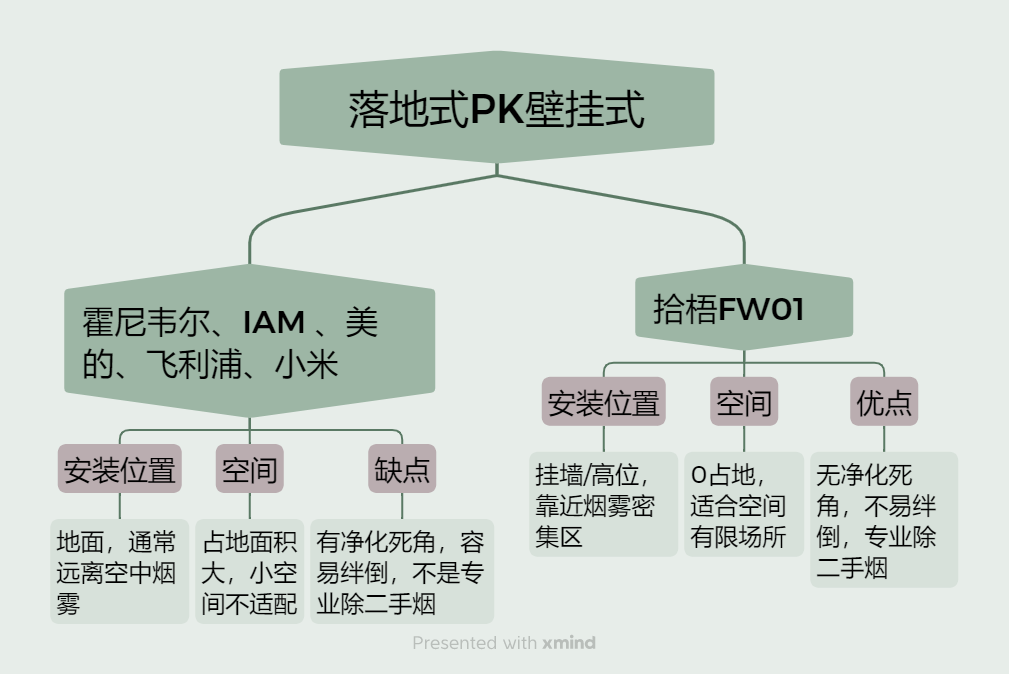 壁挂式:更适合经常有烟味的密闭空间,比如办公室等,不用担心人一多烟味压不住。