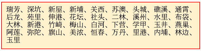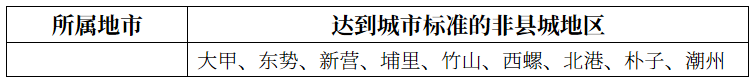 以下是台湾一些不足以称为城市的地区,但人口接近城市判定下限(3万)的乡镇聚落点。或人口虽然超过3万,但几乎全境都是低矮自建房,不满足判定标准的地区。与城市近似相连的不再列出: