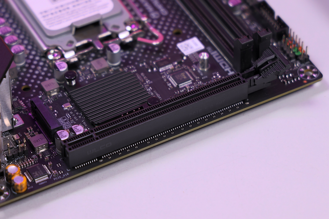 主板提供1个PCIe X16规格的拓展插槽,最高支持PCIe 5.0 x16的传输速率,可以轻松满足RTX 50系显卡的性能释放。