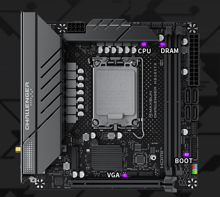必须强调下,这款ITX主板采用的是分布式Debug诊断灯设计,小白玩家也可以快速诊断主板故障位置。
