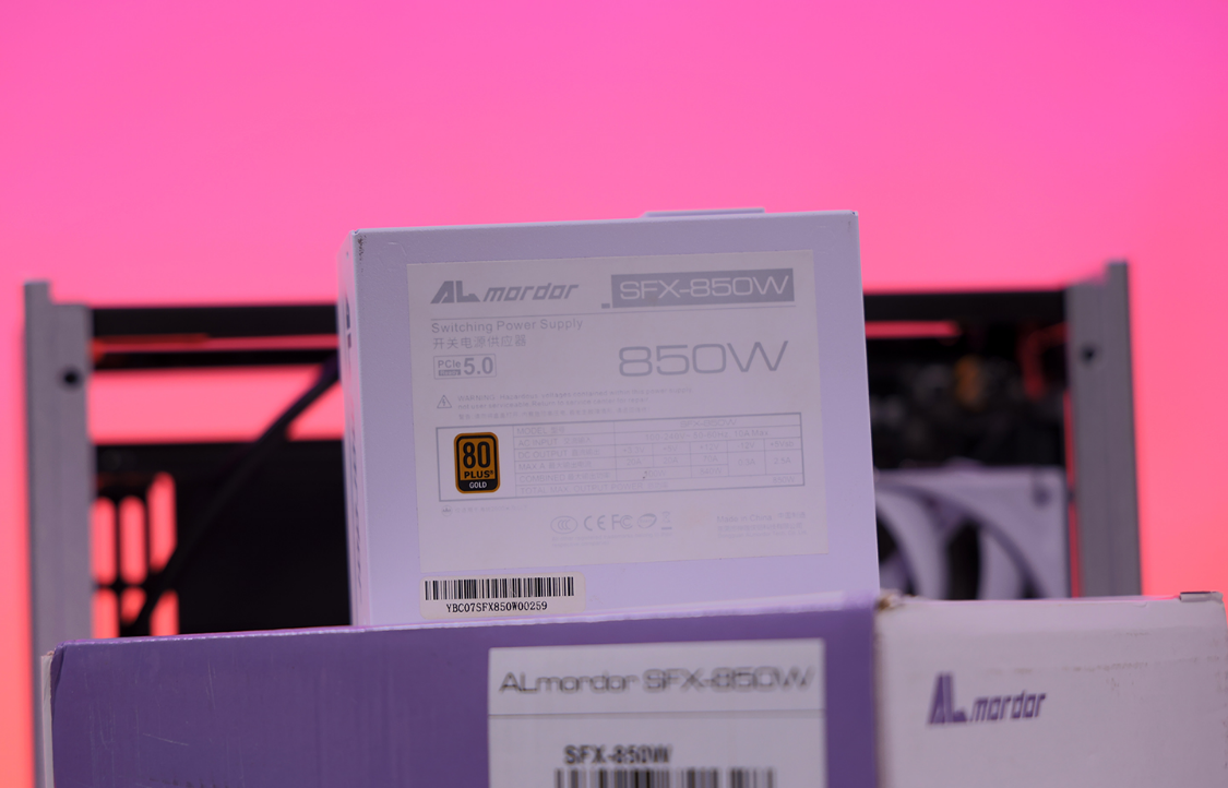 Almordor神雕SFX 850 ATX 3.1金牌全模组电源:125*100*63.5mm的三围,可以适配绝大多数ITX机箱。电源采用大量日系Nippon电容,支持100~240V全电压,通过了80Plus的金牌认证。电源原生支持PCIE 5.1和ATX 3.1供电标准,自带1个原生12V-2x6电源接口,搭配上采用加粗铜线制成的12v-2x6显卡供电线,可以提供单线600W的功耗供应,完全适配50系显卡需求;
