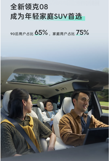 在全新领克08首批用户调研中,60%车主为已婚人群,还有15%即将踏入婚姻生活。有孩家庭占比近4成。