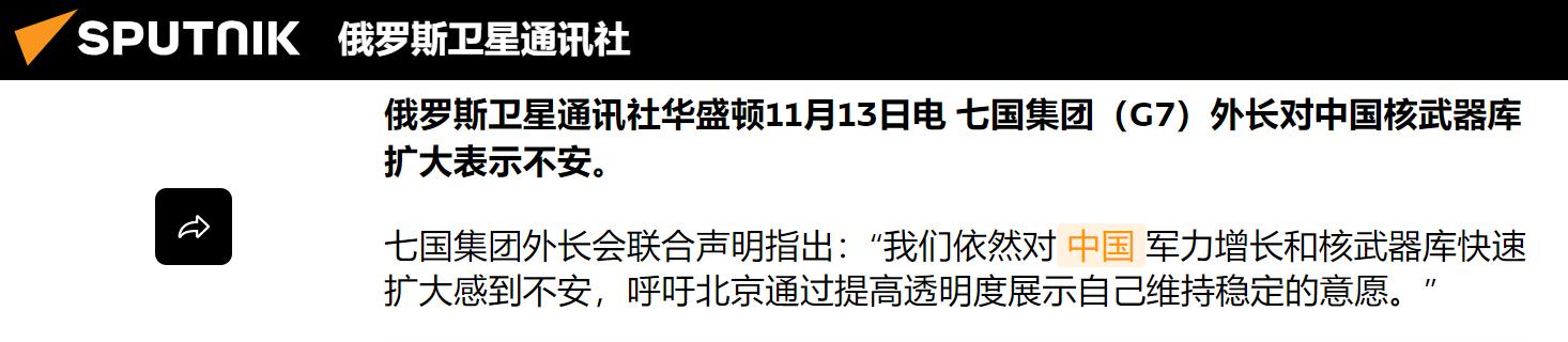 用大白话说就是,G7开始打直球了,要求中国敞开核大门,对外公开核武库具体数量。