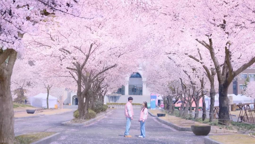 忽然,一只手从她肩头拾起一片樱花,她下意识转身,正对上男人(徐康俊 饰)温柔的目光。