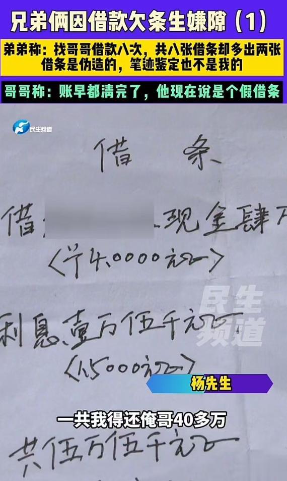 可今天发生的一件事却改变了我的想法,弟弟找哥哥借钱欠条却多出两张,可弟弟却提到:找哥哥借了8次现金,打了一共8个借条,24万多连利息要还哥哥40多万。