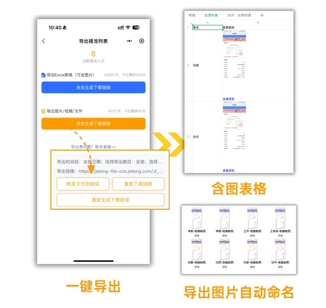 文字、图片自动与提交人姓名精准匹配,并依照预设规则自动重命名,一键即可得到“李四-缴费凭证截图”式的整齐文件,告别手动改名的低效与易错。