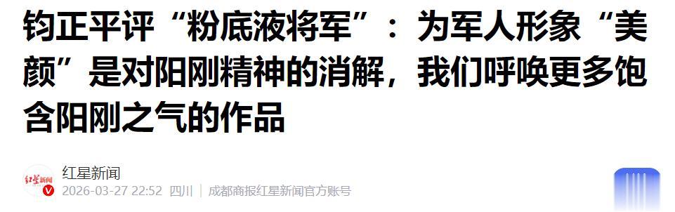 红星新闻——钧正平评“粉底液将军”:为军人形象“美颜”是对阳刚精神的消解,我们呼唤更多饱含阳刚之气的作品