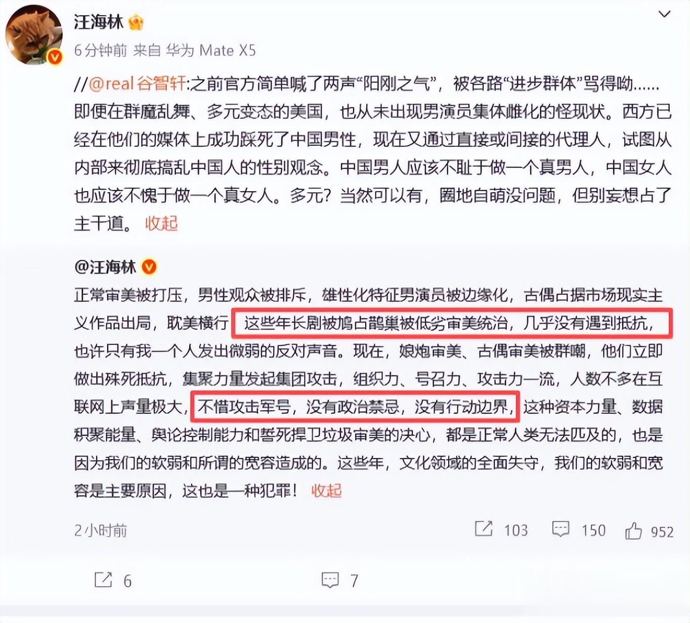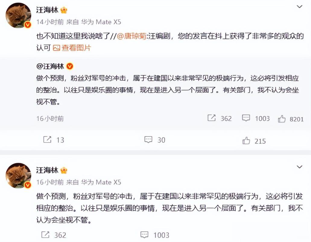 让汪海林一看更火了,直接怒斥无法无天, 要求平台严惩这些极端粉丝。