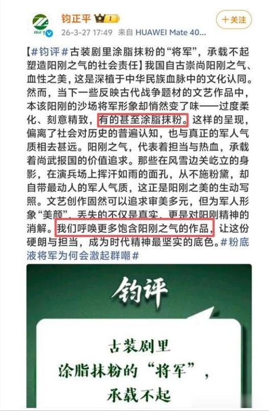 官媒接连点名批评脂粉气过重、阳刚缺失。