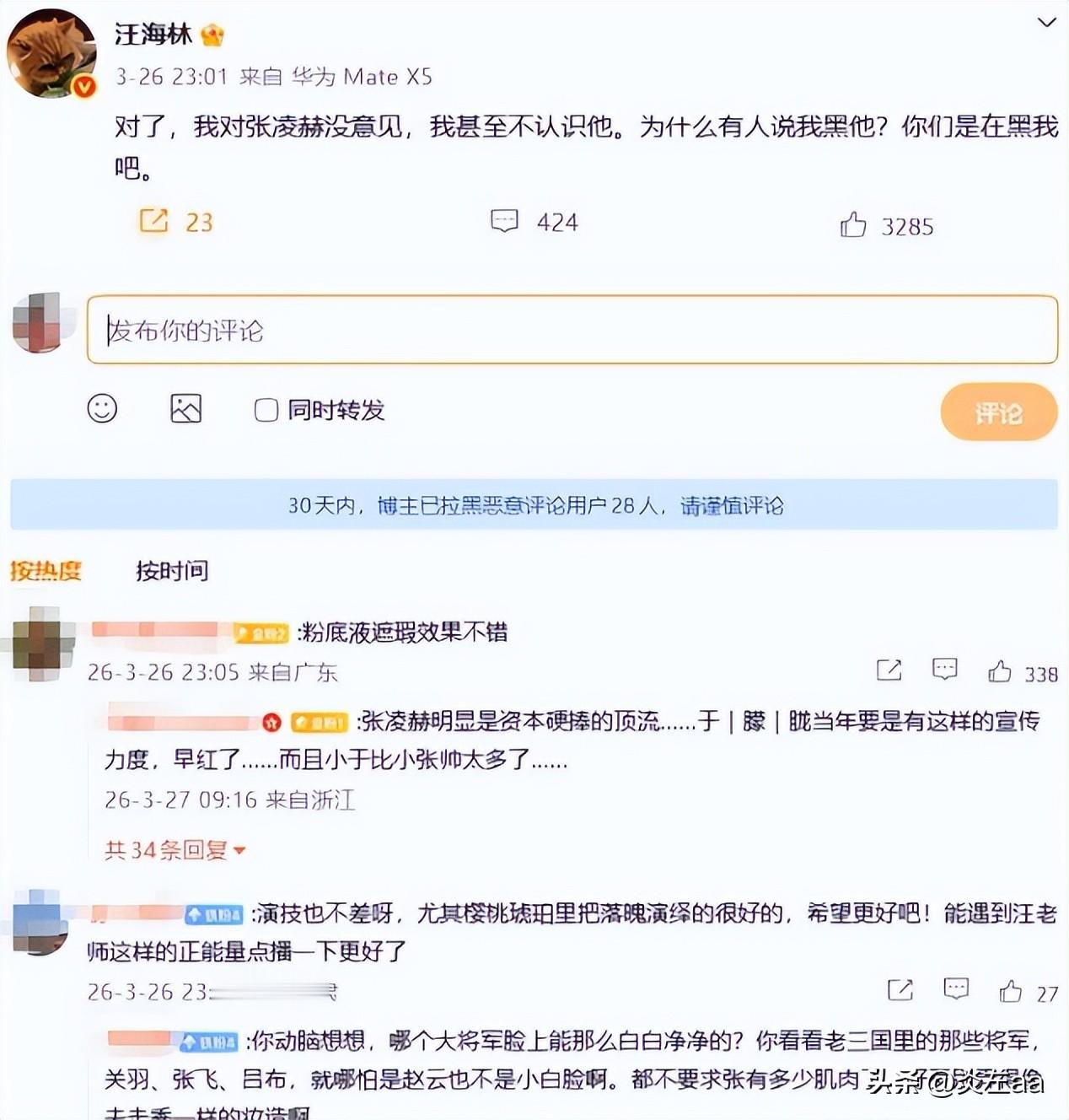 汪海林本来只是吐槽行业乱象,结果被粉丝当成针对张凌赫,一来二去就吵上了热搜。