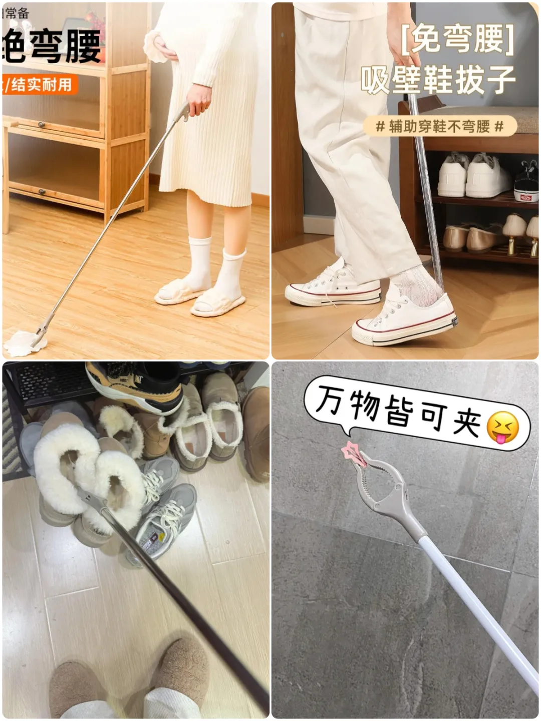▲抱怨换鞋需弯腰,针对这一问题,免弯腰鞋加长,尤其对老人和孕妇来说,使用更为不便。免弯腰夹子穿鞋捡垃圾变得轻松,简约的外观也使其在鞋柜旁既美观又实用。