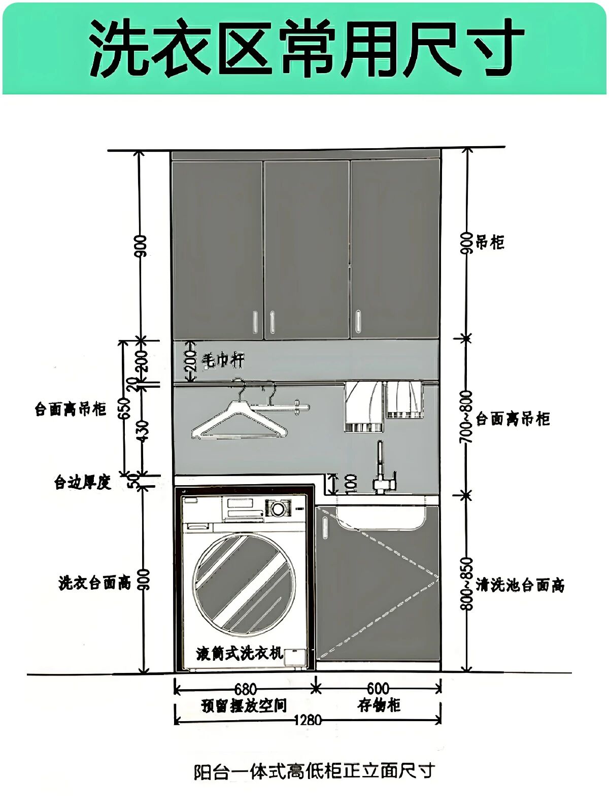 ▲阳台柜采用高低台设计更为实用,针对身高160的女性,洗东西时无需抬起胳膊,轻松又不费力!