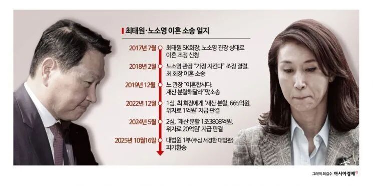 被称作“亚洲最贵离婚案”、韩国SK集团会长崔泰源与韩国前总统卢泰愚之女卢素英的1.38万亿韩元(约69.2亿元人民币)财产分割案,出现大反转。