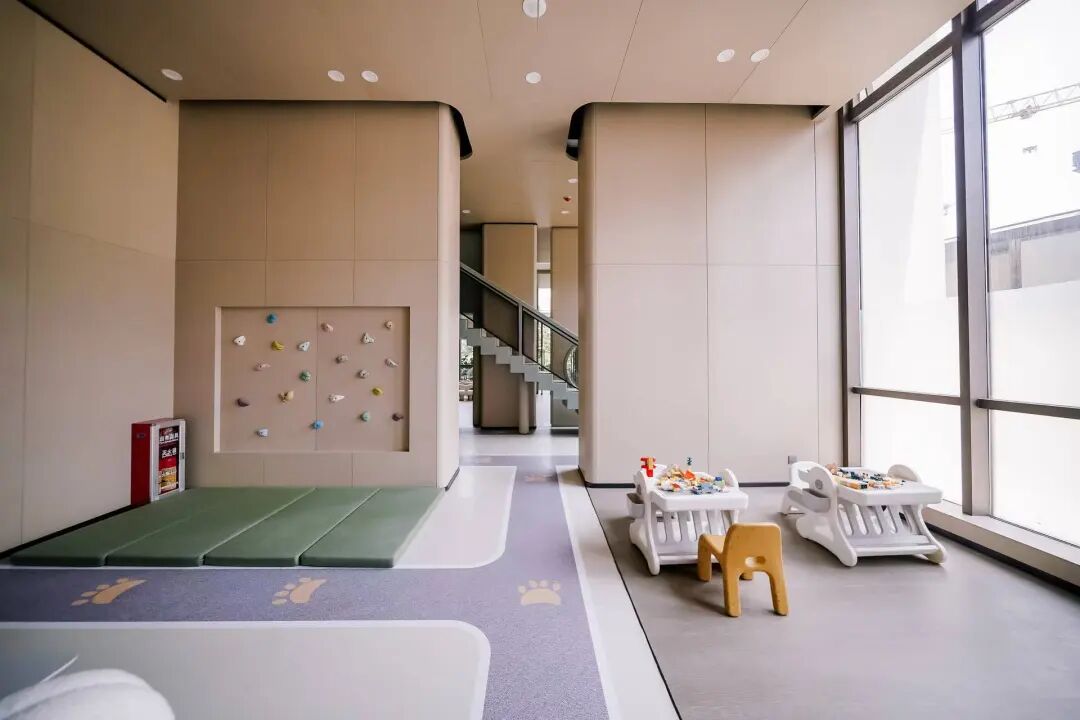 不同于很多架空层只是简单放置桌椅,这里的架空层,嵌入了很多游乐设施,还配备了中央空调,防晒防雨淋,孩子玩得开心,家长放心。