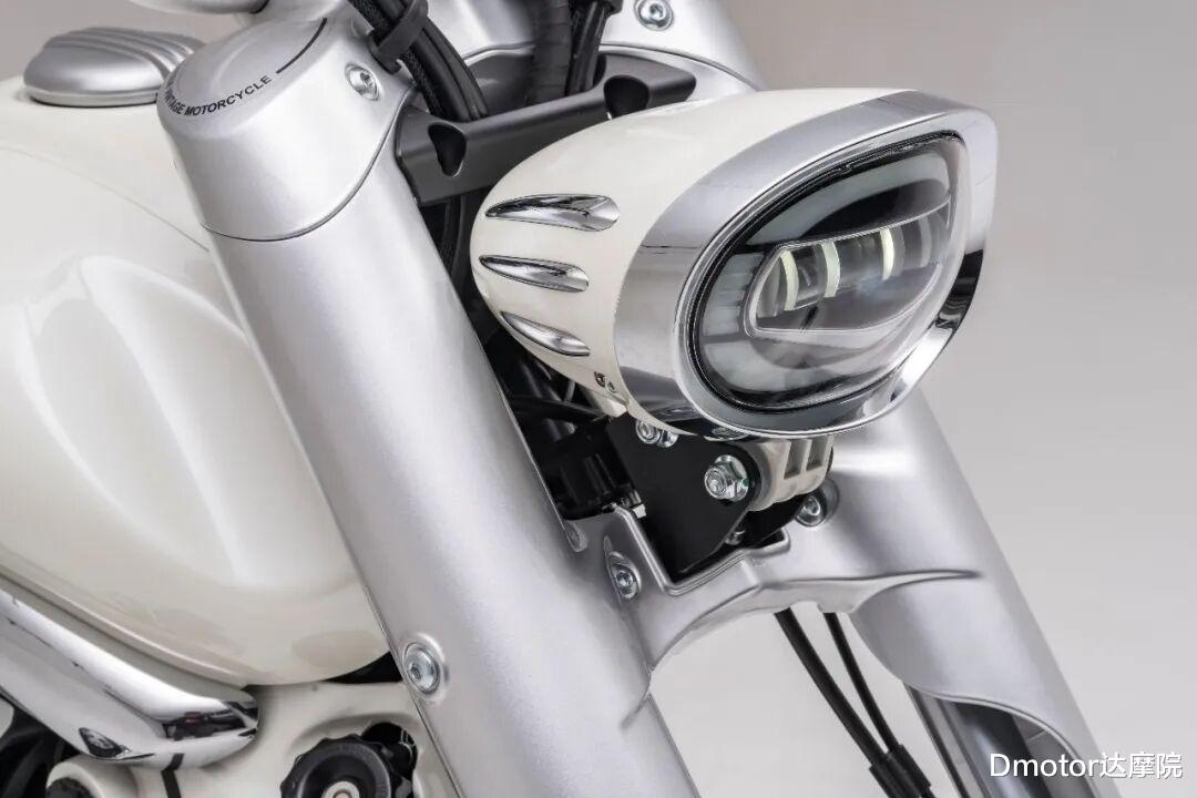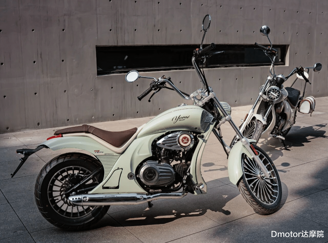 座垫采用一体式低座设计,参数显示坐高控制在约690mm,搭配后段自然下坠的尾部线条,典型的Chopper比例被很好地还原。