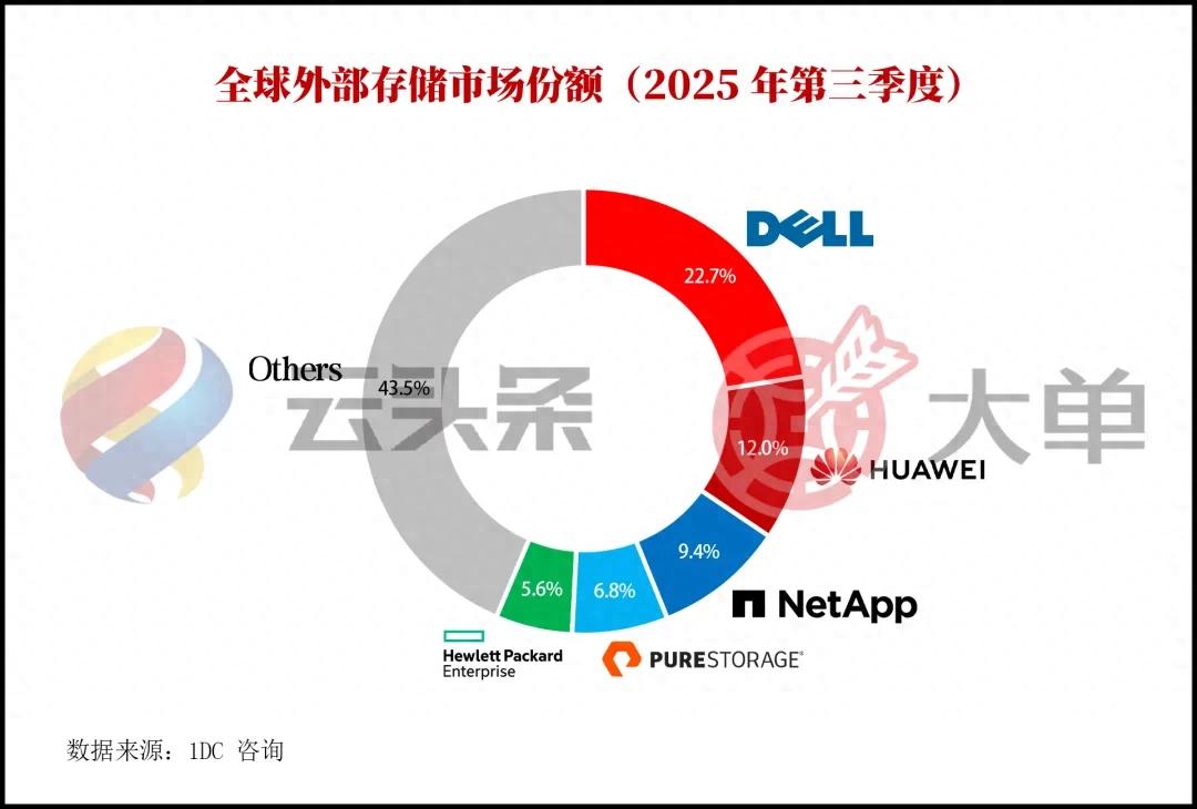 2025 年 12 月 13 日,IDC 发布的《全球企业存储系统季度追踪报告》显示:2025 年第三季度外部OEM企业存储系统(ESS)市场同比增长 2.1%,厂商收入达到 80 亿美元。