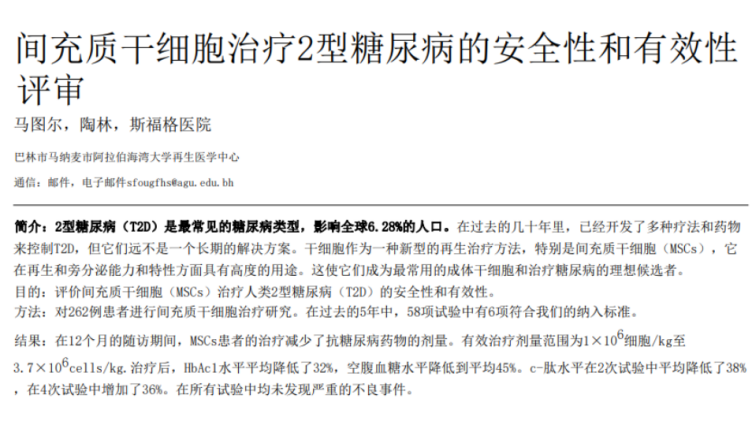 近年来,科学家发现间充质干细胞由于具有多向分化潜能,可以旁分泌血管生成因子、各种细胞因子和免疫调节物质等特性,可以很好地控制血糖,通过全身效应改善微血管并发症。