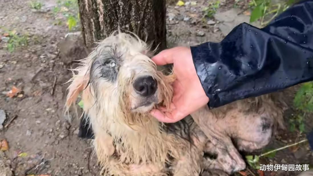 注意看眼前有一只眼睛受伤的,在雨中被淋得湿漉漉的可怜的毛孩子!