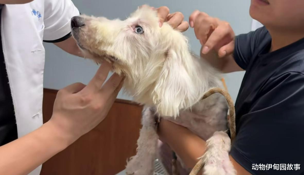 大家看到的这只狗狗就是我,我被主人遗弃在野外,不仅眼睛受伤,皮肤也有问题,身上的毛发都快掉光了!