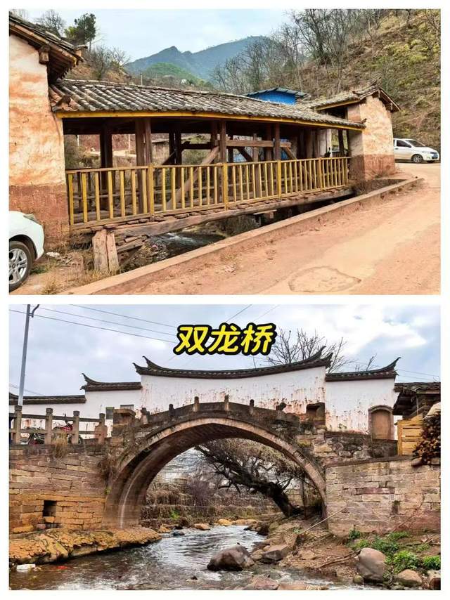 其中,双龙桥,一孔行空,半个园月,弯弯石拱成桥。一边照壁作围栏,另一边装石栏杆,满足安全,美好生活风生水起。建于嘉庆年间(1806年),石兽雕塑,温馨可爱,担任守桥之责,义不容辞。一物一件,古色古香。