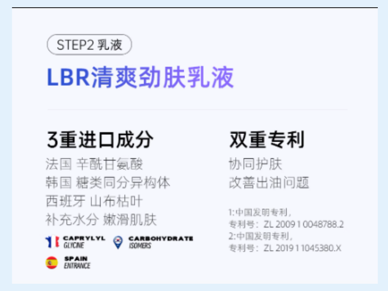 (二)LBR 男士补水保湿水乳套装使用小贴士使用顺序:洁面后,取 3-4 滴爽肤水于手心或化妆棉上,轻轻拍打至全脸吸收,待爽肤水完全渗透后(约 30 秒),取适量乳液均匀涂抹于面部,重点按摩 T 区、鼻翼等出油较多部位。