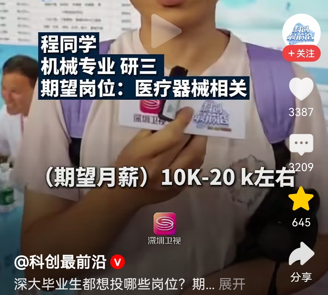 “期望年薪是不能低于25万,月薪大概是1.5万-2万,月薪1万是自己的底线,这是来自三位不同大学在被问到月薪或者年薪的时候的真实想法,值得注意的是这三位大学生都是各自专业的研究生。
