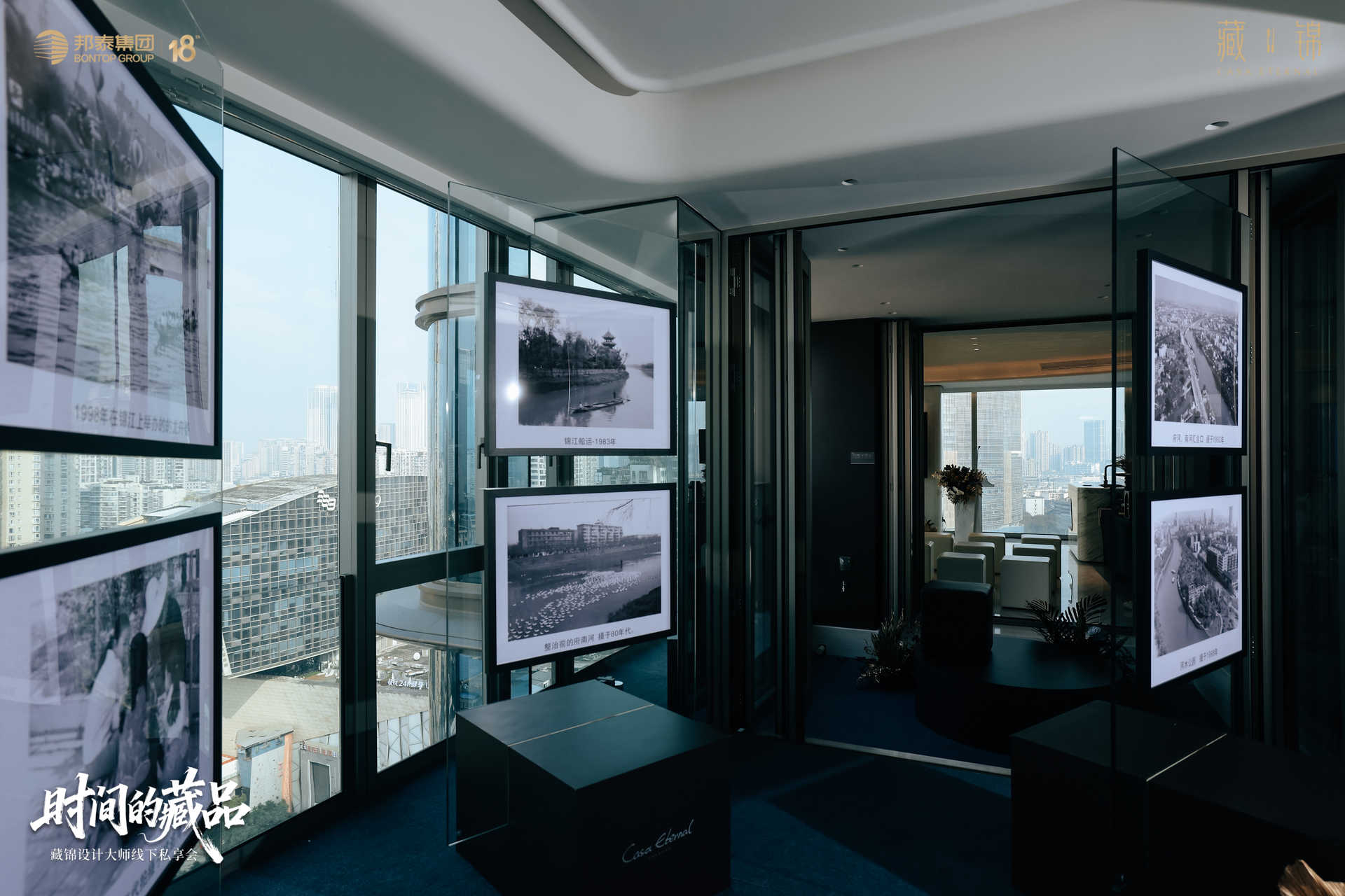 「时间的藏品」沙龙将举办场地移入藏锦交标样板间内,让参与其中的人更直观的感受这座城市的心跳与藏锦价值观——窗外,是成都339电视塔的流光溢彩与府河奔涌不息的波澜;窗内,是藏锦以沉静姿态铺展的一隅私享空间。