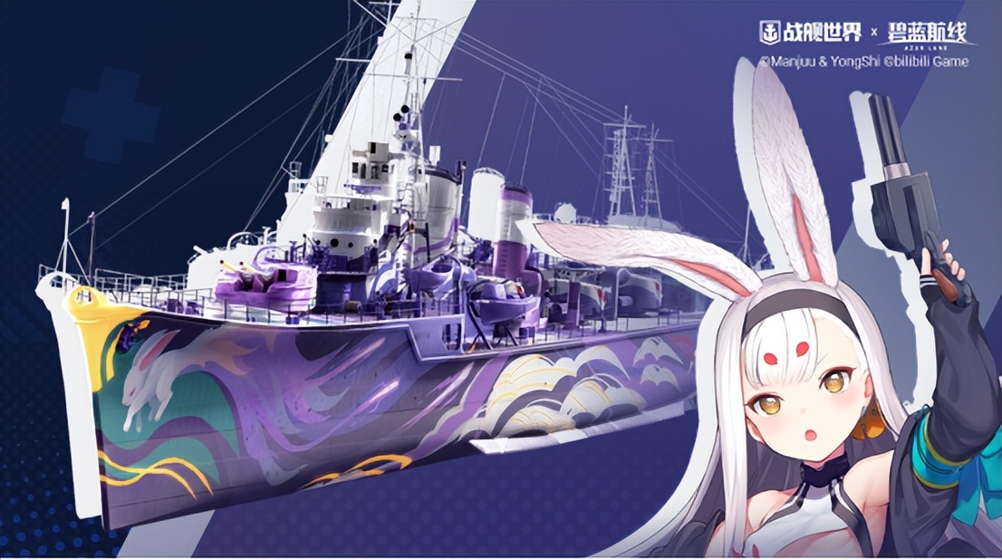 笔者个人最喜欢R系10级驱逐舰AL芒的涂装设计——这艘战舰全身以浅紫色为基调,舰体上绘制着云朵纹路,船头的可爱兔子还原了舰娘最亮眼的兔娘形象要素,无论配色还是设计都堪称完美。