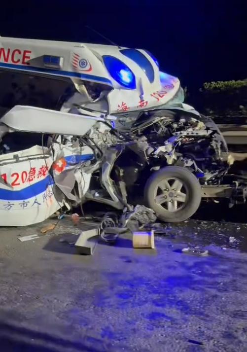12月17日,有海南IP网友反映,海南一高速路发生救护车追尾事故,救护车车头损坏严重。