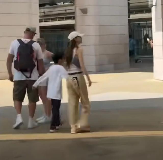 网友拍摄的视频里,杨颖穿着白色小背心,宽松的卡其色工装裤,头上还戴了一顶白色鸭舌帽,脸上没有戴口罩,整个人显得十分松弛。