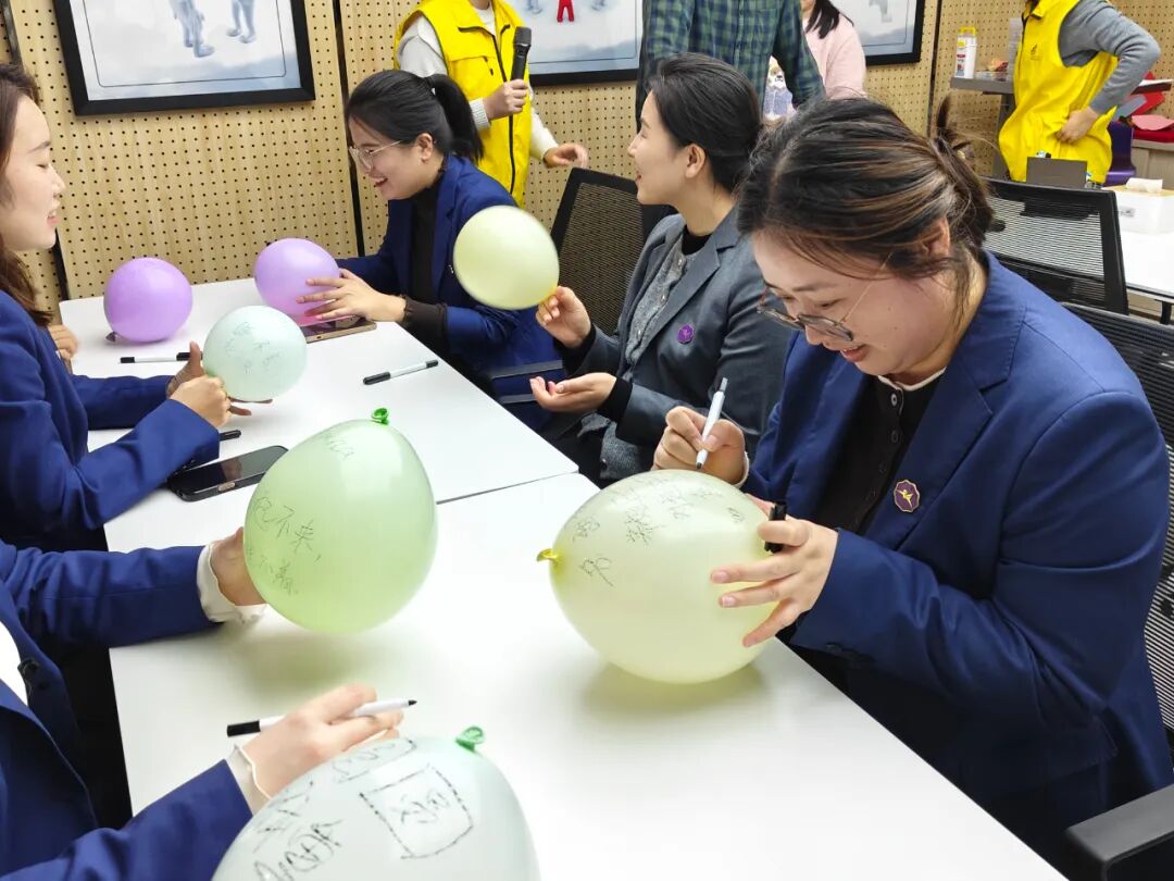 活动在“压力气球传声筒”的热闹氛围中正式开启!跟随现场讲师指导,大家在气球上写下压力与烦恼,随机传递并收集伙伴们的解压妙招。此起彼伏的气球爆破“啪啪”声将烦恼与压力全部释放,现场欢笑与掌声交织。