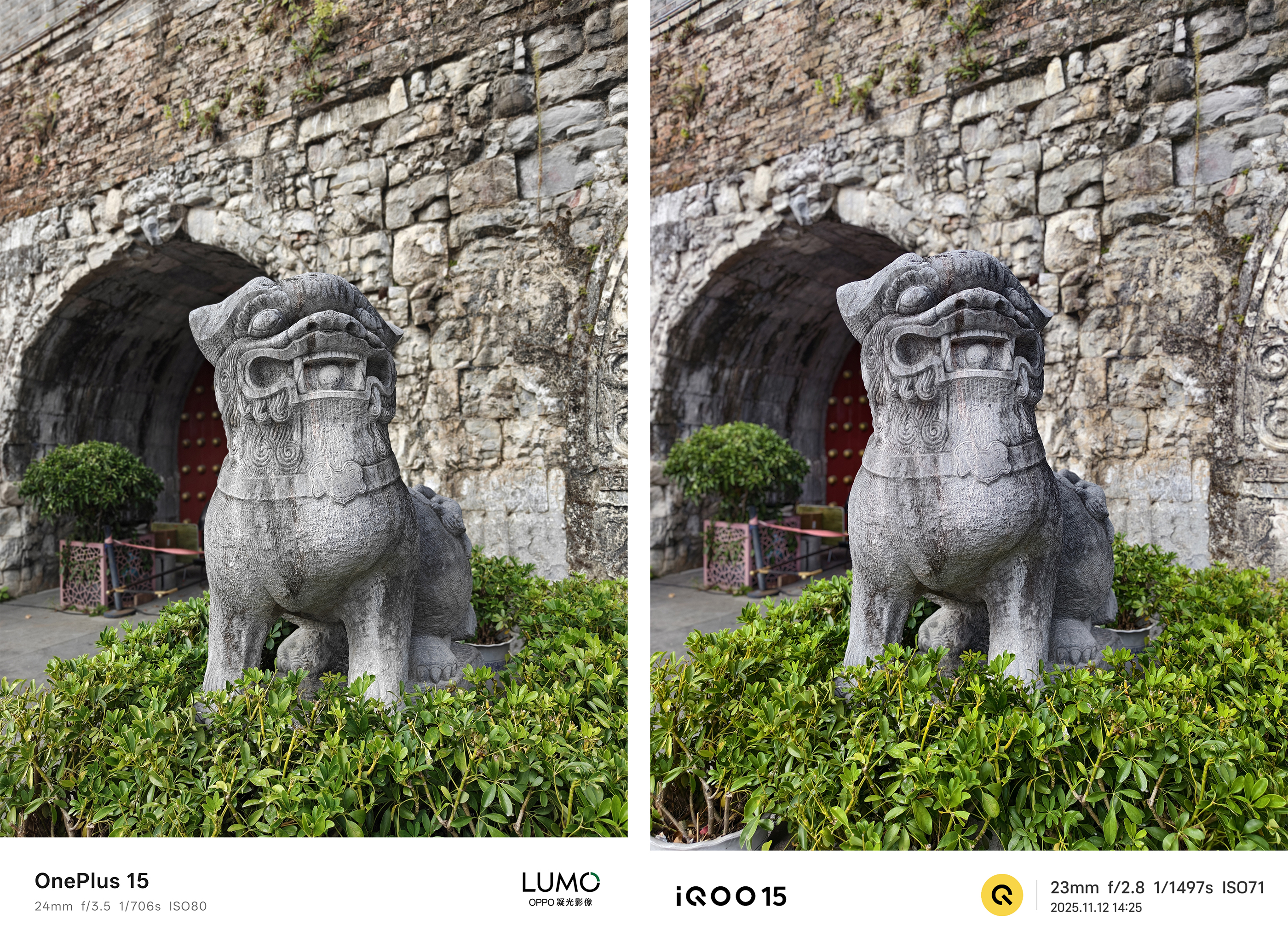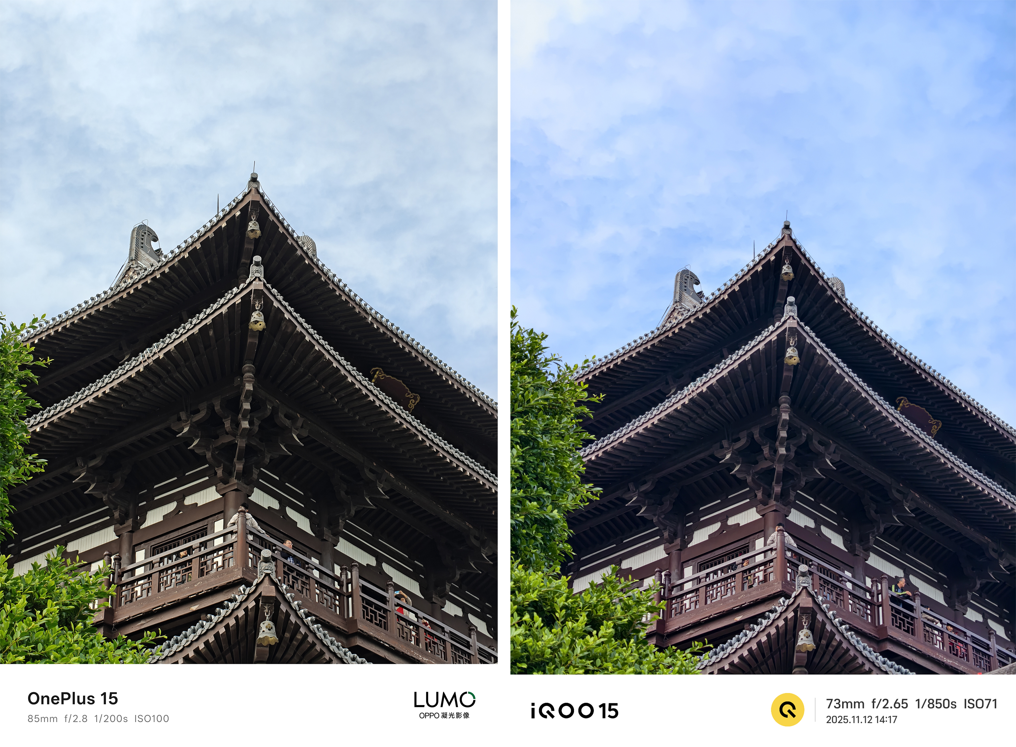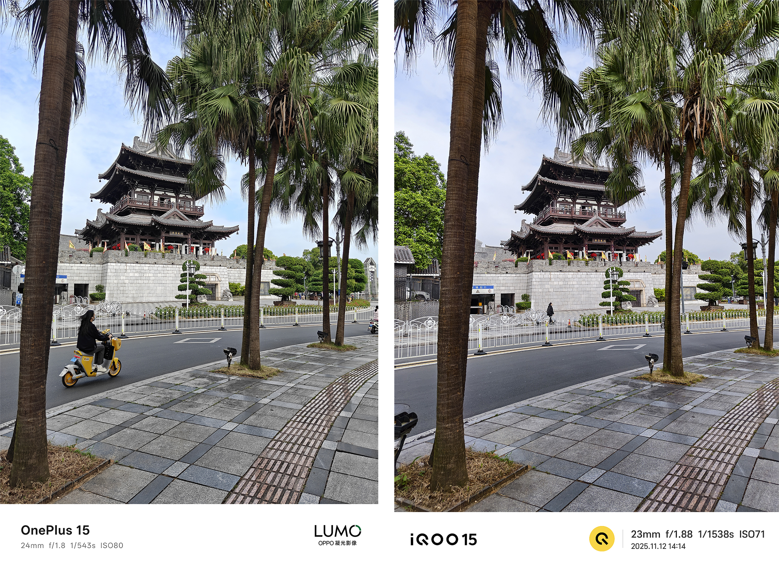 不过默认调色方面,iQOO 15的色调略微偏向冷一些,而一加15的色温则更贴近拍摄时的实际光照。
