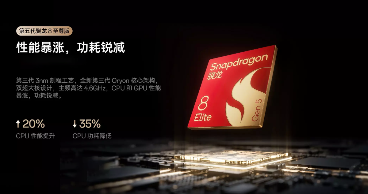 相同的起点,不同的表达iQOO 15和一加15均搭载着3nm制程的第五代骁龙8至尊版,该处理器为第三代Oryon核心架构,双超大核设计,主频峰值高达4.6GHz,相较于前代平台,其CPU性能提升达20%,功耗却显著降低35%。