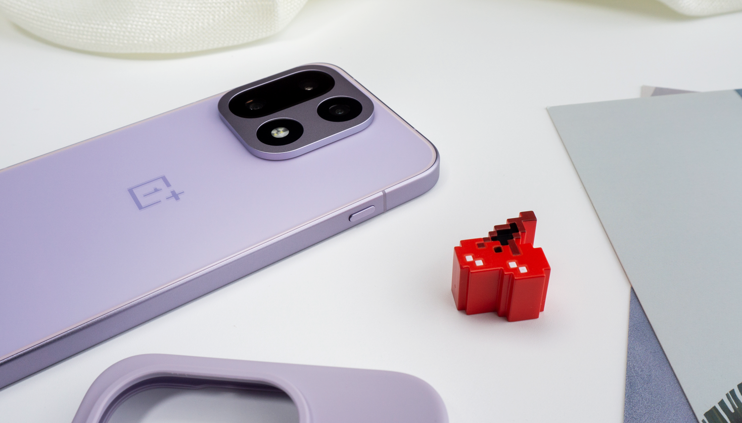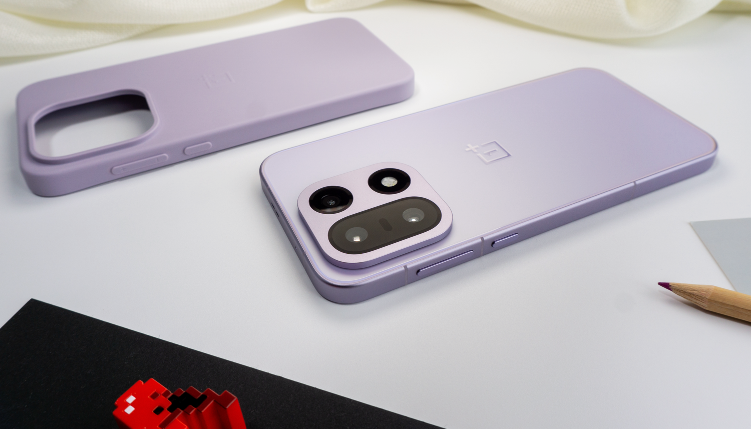 接下来看下一加数字旗舰这边。目前一加15提供了原色沙丘、雾光紫和绝对黑三款配色。作为主推色的“原色沙丘”,不仅是三款中厚度与重量控制最佳(同样为8.1mm与215g),其材质本身更是一大亮点。它并非普通玻璃,而是由金属基材与纳米陶瓷涂层复合而成,既轻巧又坚固。