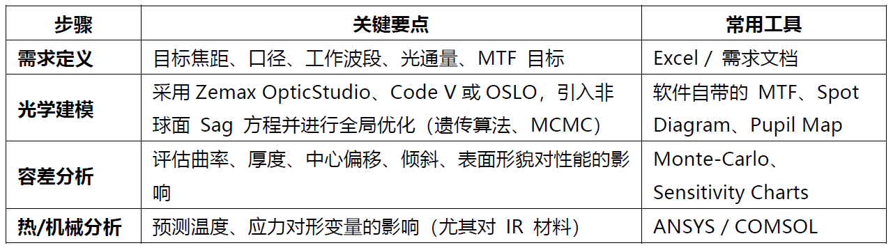 技术提示:在高 NA 设计中,高阶系数A必须延伸至i=8‑10,否则难以抑制高阶像差(彗形、畸变)。