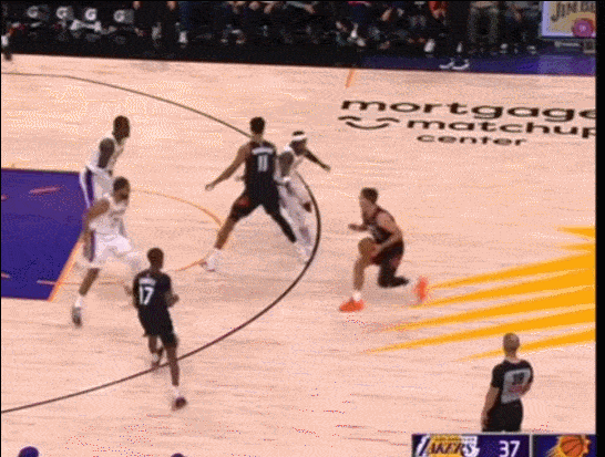 他上去就是防布克 当理查兹掩护后 把他挡在身后 他奋力回追 完成抢断