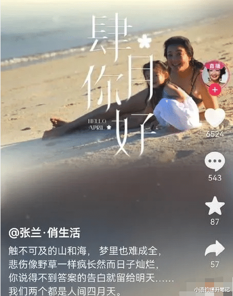 就在网友们都好奇,为何张兰没跟着一起去看孙子孙女时,张兰抖音被扒出,她文邹邹的晒出她和孙女的沙滩照,还配文触不可及的山和海,梦里也难成全,悲伤像野草一样疯长,什么得不到的答案和告白就留给明天;