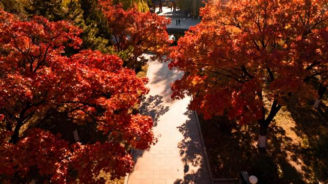 北陵公园的秋,是皇家园林中舞动的绚丽彩绸。作为清昭陵的所在地,秋日的北陵更显庄严肃穆。园内 40 余株五角枫在 10 月末换上华丽的秋装,红橙渐变的叶片从高处俯瞰,宛如一幅立体画卷徐徐展开,与远处朱红的宫墙、金黄的琉璃瓦相互辉映,美不胜收。漫步在千年古柏之间,脚下落叶沙沙作响,不时可见身着汉服的游人驻足拍照,古今风情在此完美交融。5 元的亲民门票与便捷的交通,让这座皇家园林成为触手可及的秋日秘境。
