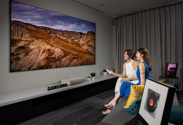 此款对应4K解析度影像投放的超短焦投影机采用三原色雷射技术,并且配合三星量子智慧处理器,可对应Quantum HDR、HLG等广色域影像投放,同时符合HDR10+认证,可对应1500:1原生对比,以及高达2000000:1动态对比,最大投放影像亮度可达3450流明,更可藉由三星人工智慧技术将低解析度影像提高至贴近4K画质表现,另外也能藉由光线自动调整方式确保清晰画面显示。
