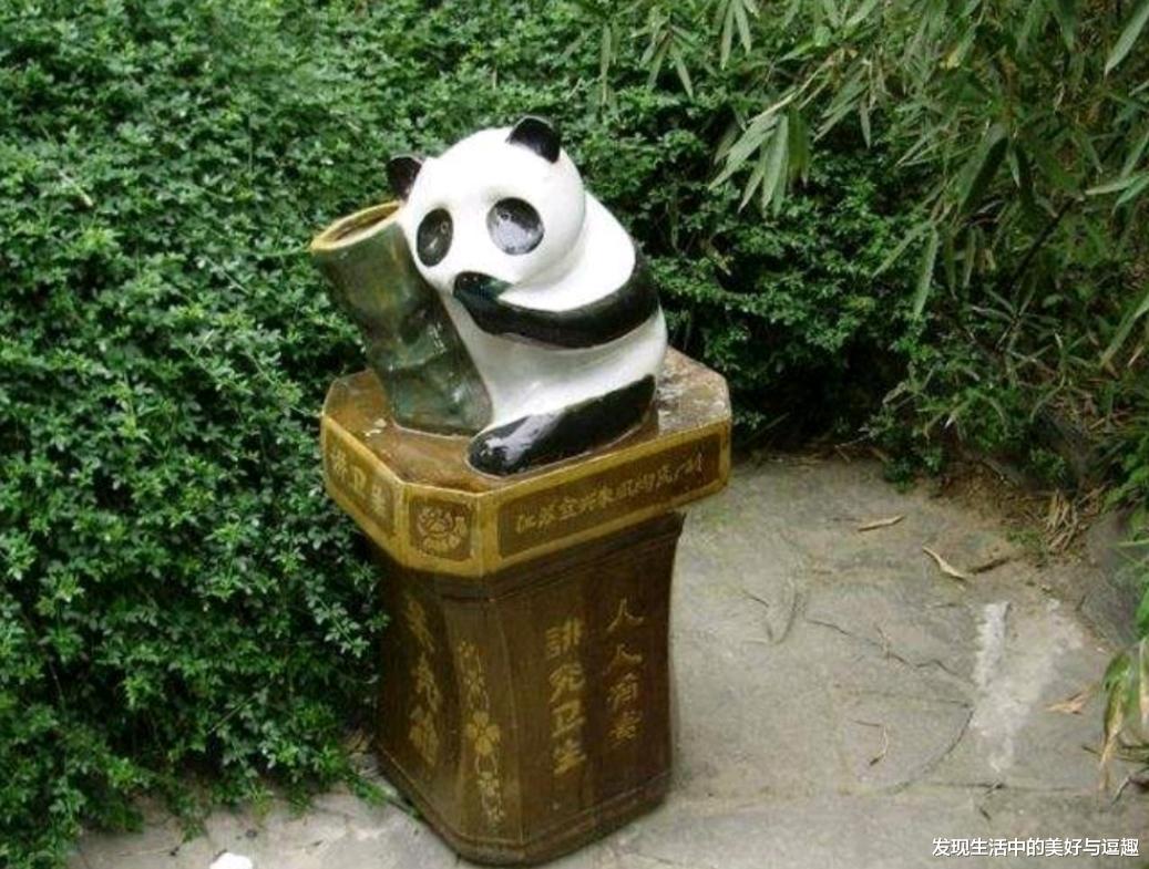 还有个国宝熊猫的,终于不用张嘴了,往竹子里倒垃圾。