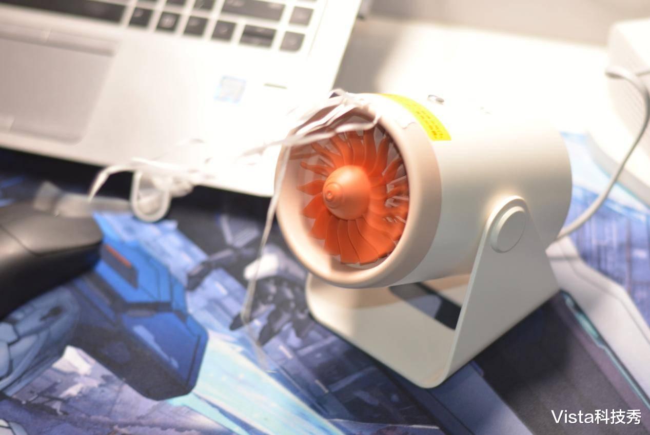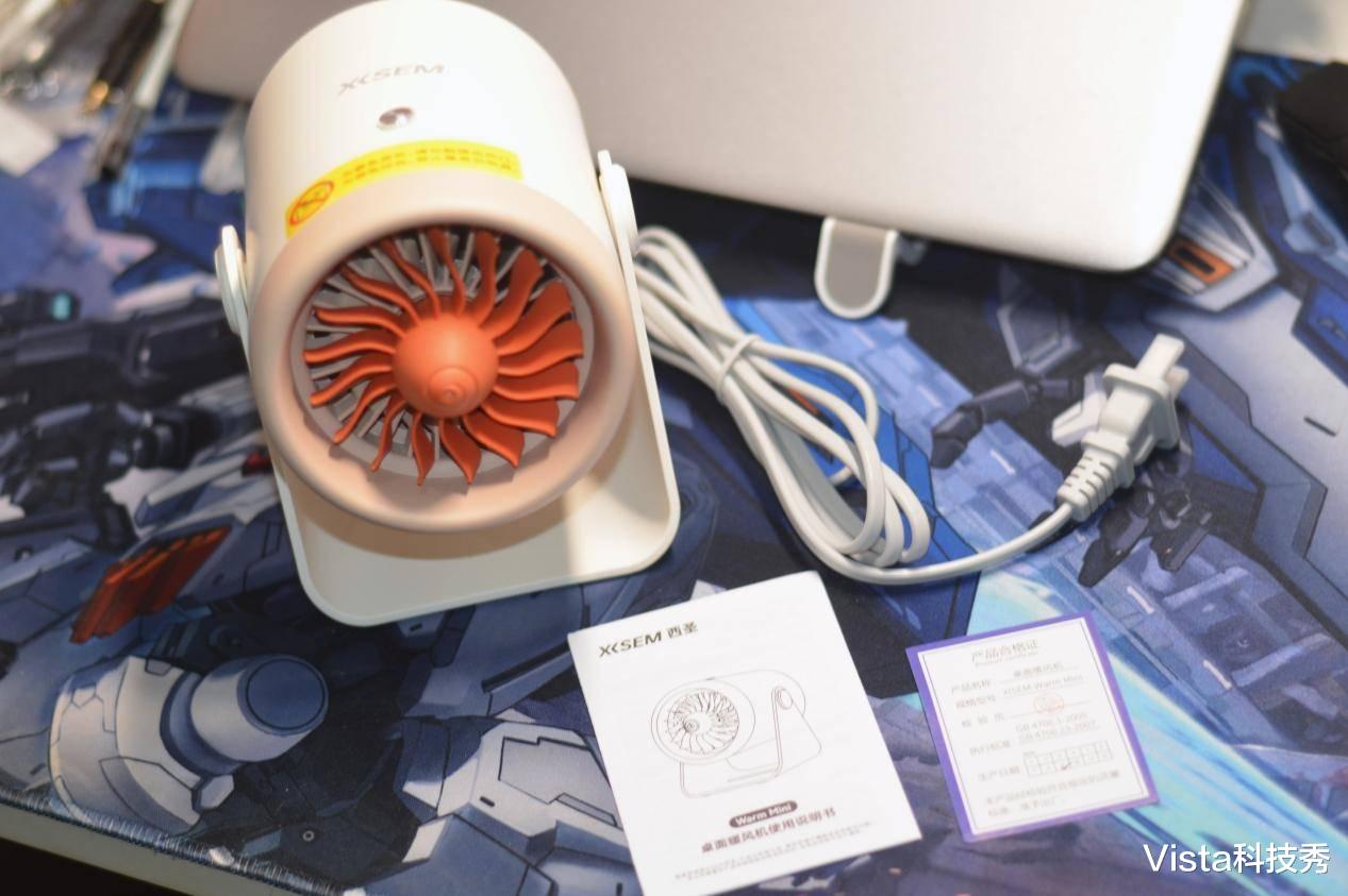 西圣Warm Mini暖风机182克超轻量化,拿在手上很轻巧,橙色的扇叶搭配暖风机白色突显特色,转动起来像飞机涡轮发动机一样。