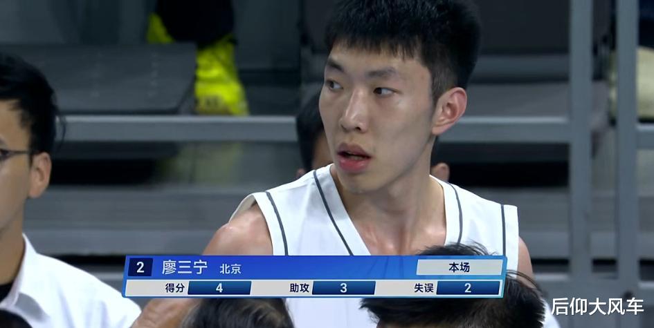 廖三宁依旧低迷,继续打成了战犯,本场出战28分钟仅11中3拿到6分,北京本届全运会目前打了5场比赛,廖三宁就拉胯了4场(另外一场没拉是因为对手是澳门),低级失误不少,一拿球只会无脑冲,完全组织不起进攻,远不如生涯暮年的方硕靠谱。