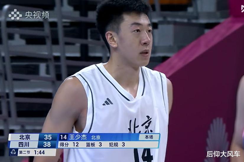 次节中段许利民再上双塔对付胡金秋,王少杰、方硕再爆发连得4分帮助北京33-32反超,王博终于坐不住叫出暂停,也跟着换上双塔,但撤下了孙铭徽,周琦回来后立马就制造2罚做出贡献,并且还将范子铭3犯提前打掉,许利民无奈换上翟晓川,内线压力也就全都压在王少杰身上。