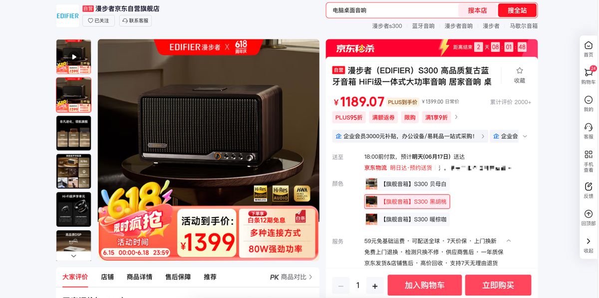 出色的音质表现,在2000元价位段几乎难逢敌手,无论是日常听歌、观看电影,还是进行一些专业音频工作,都能提供令人满意的听觉体验。复古又不失现代感的外观设计,使其不仅是一个音频设备,更是一件家居装饰品。目前 618 到手价 1480 元,同时支持白条 12 期免息,价格非常划算。