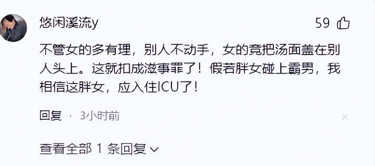 有网友说,我就想知道这个女的进去后,里面的清汤寡水能不能帮她把这身肥膘减下去。