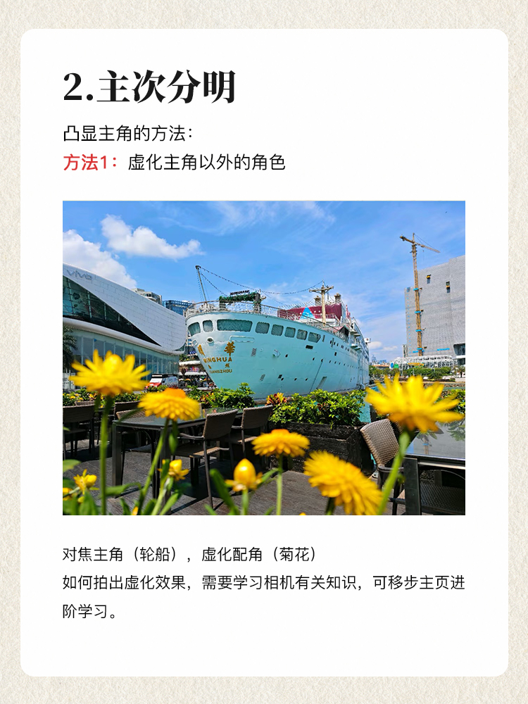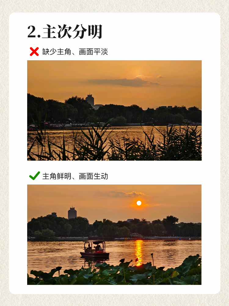 主题明确:别让观众猜!删掉杂乱背景,让想拍的主体一眼突出。